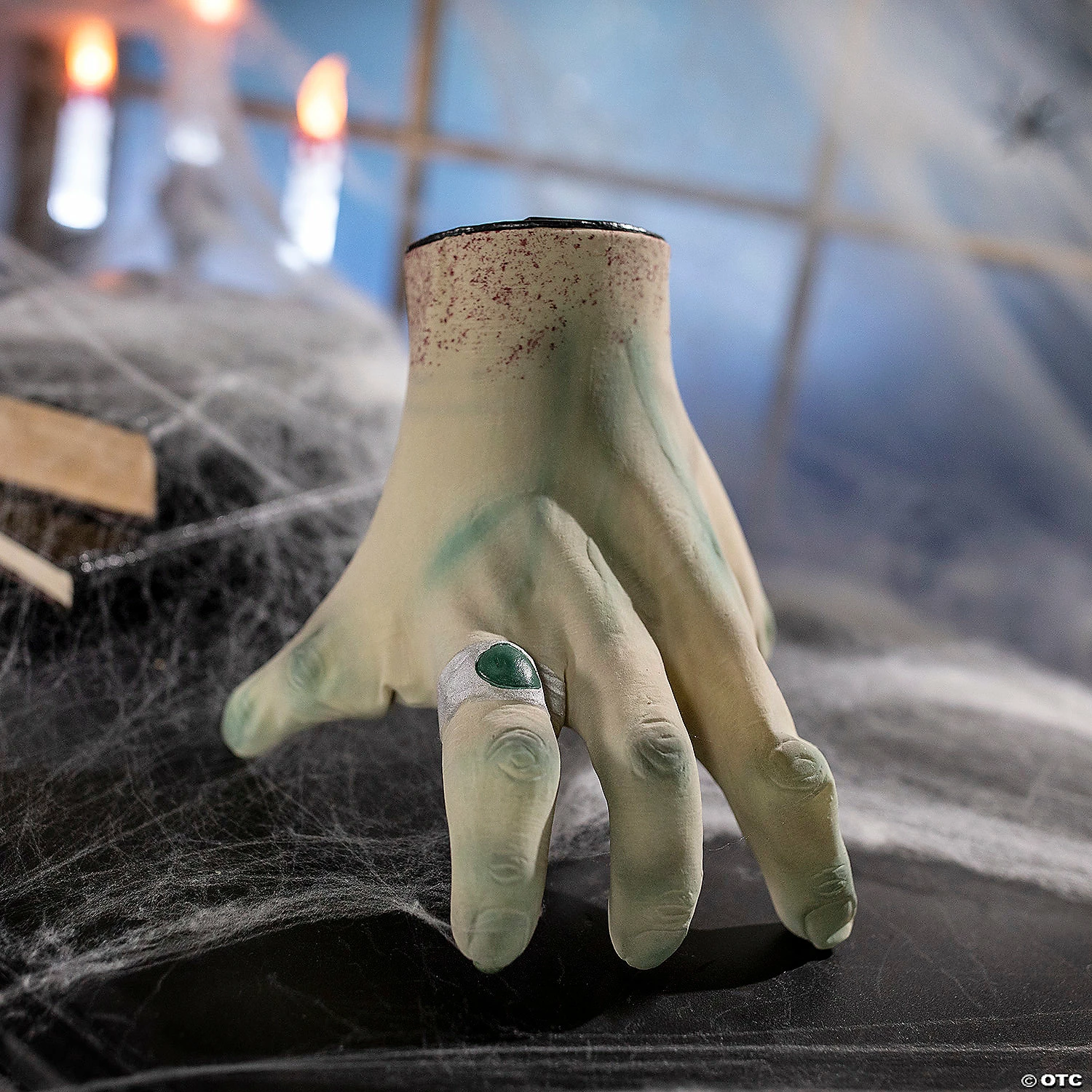 Bring a touch of creepy to your scary decorations for Halloween. Whether you are decorating a haunted house or Halloween party, this animated hand will surprise and thrill your unsuspecting guests. Provide startling chills to your partygoers with this spooky décor. Plastic. 7 1/2″ Requires 3 “AA” batteries, included.