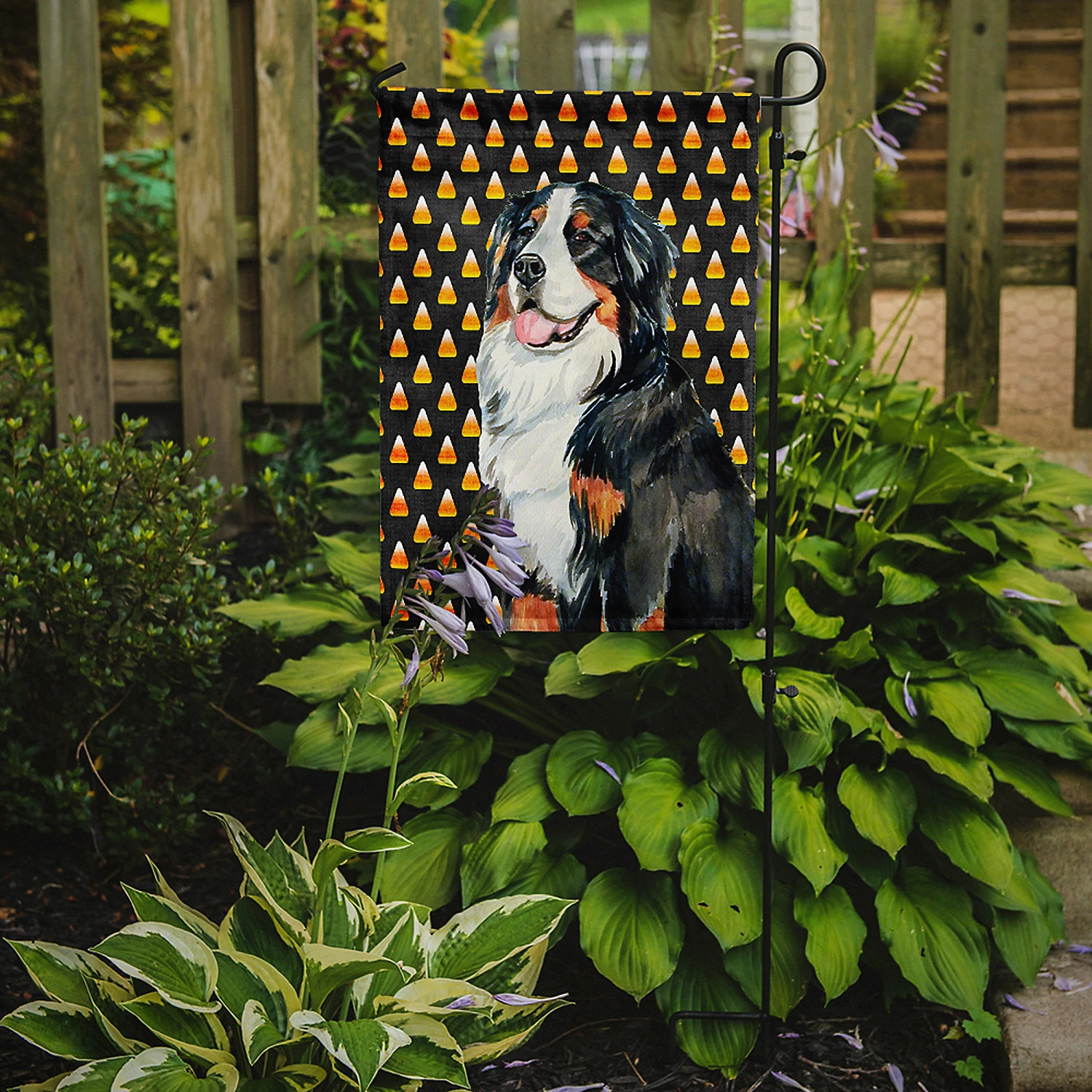 Bernese Mountain Dog Candy Corn Halloween Portrait Flag Garden Size. Flag Garden Size featuring breed specific Bernese Mountain Dog artwork. Celebrate Halloween with this Halloween Garden Flag. Artwork for your garden, patio or yard. This is a thick Double sided garden flag made from two pieces of polyester fabric. This 2 ply garden size flag is water resistant and weather proof. Words on the flag can be read correctly on both sides of the garden flag. Heavier than most other garden flags available. This flag will hold up in wind, rain and snow. Make your personal statement in your outdoor decor with this colorful quality garden flag. The flag measures approximately 11 1/4 inches x 15 1/2 inches. The flag has a 1 1/2 inch sleeve sewn in to allow you to attach the flag to any standard garden flag stand or garden size porch hanger. The garden stand is sold seperately. This Garden Flag is from Caroline’s Treasures Dogs category of products.