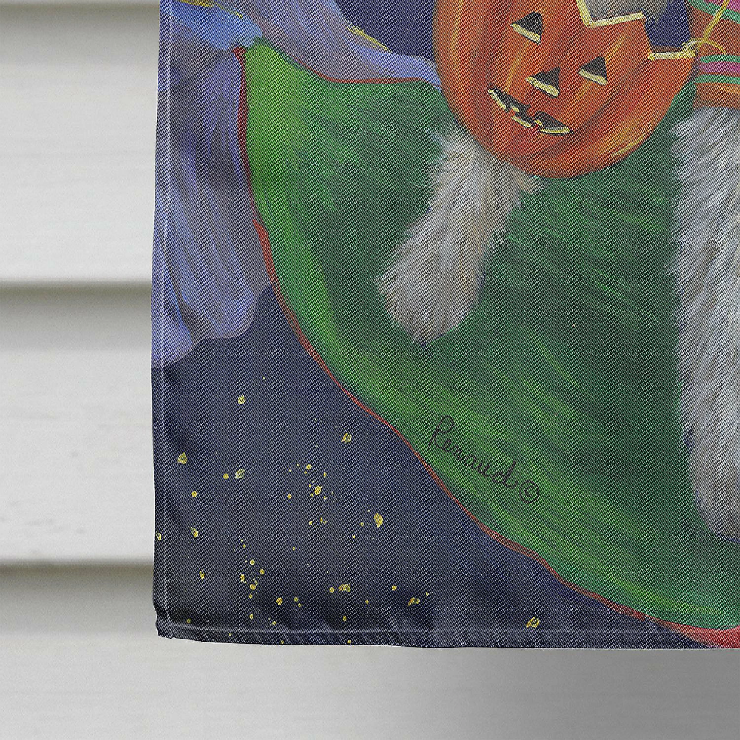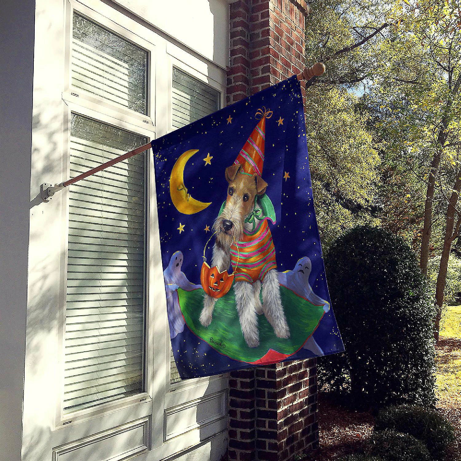 Fox Terrier Halloween Trick or Treat Flag Canvas House Size. Flag Canvas House Size featuring breed specific Fox Terrier artwork. Celebrate Halloween with this Halloween Large Flag. Heavy Duty Polyester House Size Decorative Sleeve Pole Flag. Each flag measures approximately 28 x 40 inches. This flag is sewn and made one at a time and may vary slightly in size. This is a sleeve pole flag that will fit a standard decorative flag pole. The flag pole and bracket are not included and should be purchased seperately. The flag is printed on both sides of the fabric with one side mirroring the other side. Each flag is printed in full color and they dyes are heat set for durability. This Large Flag is from Caroline’s Treasures Dogs category of products.