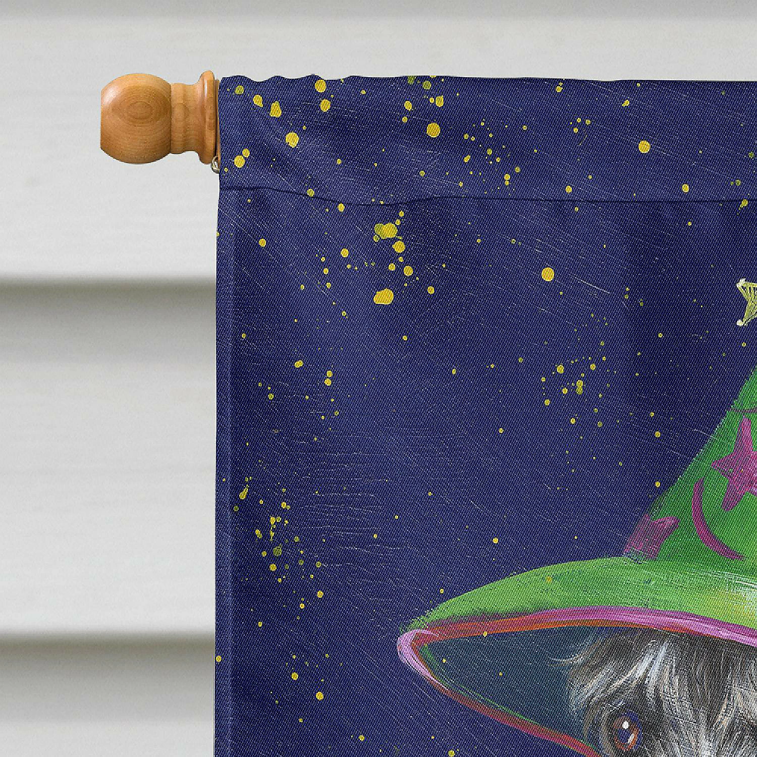 Schnauzer Halloween Good Witch Flag Canvas House Size. Flag Canvas House Size featuring breed specific Schnauzer artwork. Celebrate Halloween with this Halloween Large Flag. Heavy Duty Polyester House Size Decorative Sleeve Pole Flag. Each flag measures approximately 28 x 40 inches. This flag is sewn and made one at a time and may vary slightly in size. This is a sleeve pole flag that will fit a standard decorative flag pole. The flag pole and bracket are not included and should be purchased seperately. The flag is printed on both sides of the fabric with one side mirroring the other side. Each flag is printed in full color and they dyes are heat set for durability. This Large Flag is from Caroline’s Treasures Dogs category of products.