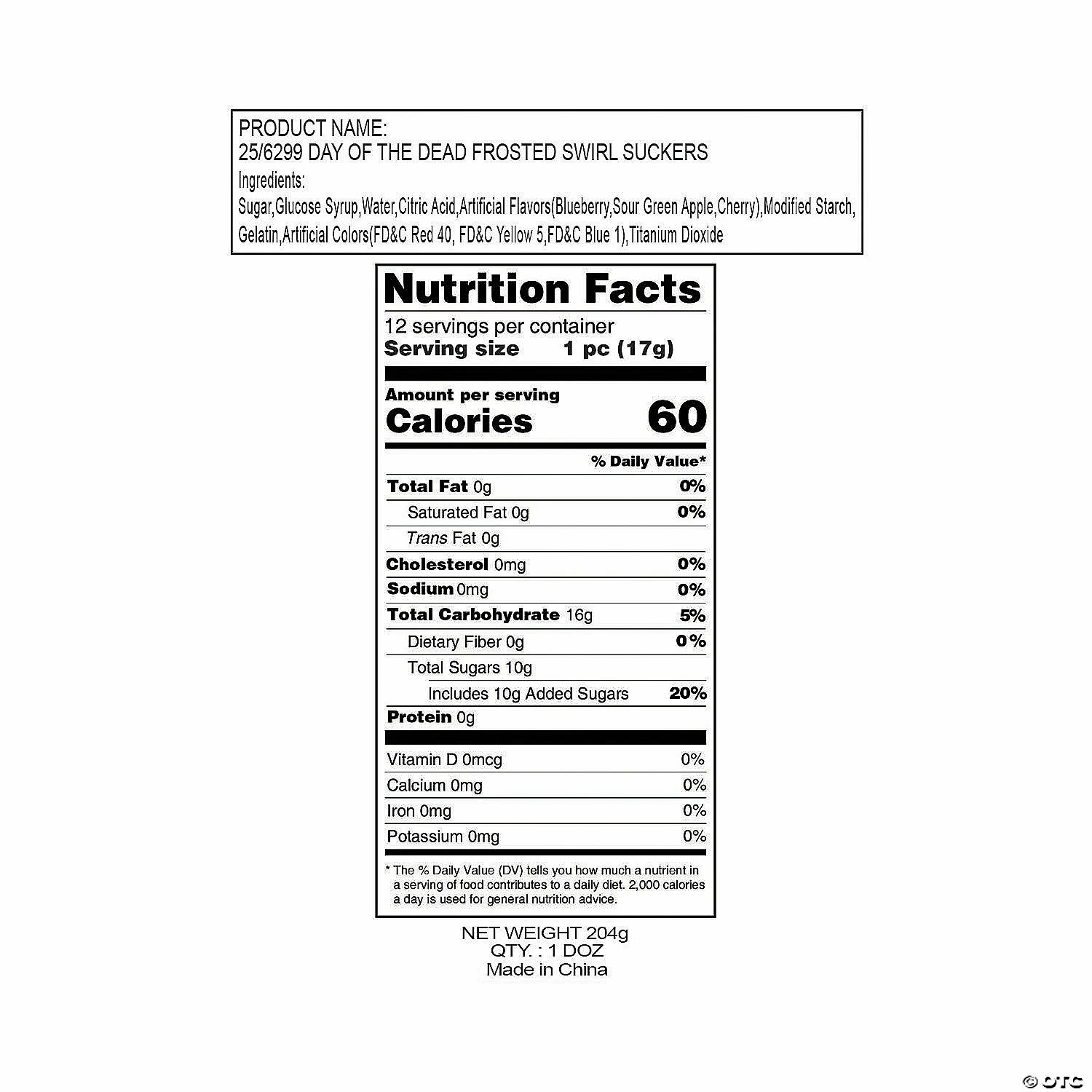 Your trick or treaters will lose their heads over these Day of the Dead lollipops. These Halloween treats make great favors for Halloween parties, Day of the Dead celebrations or any time you need silly skull-shaped sweets. Each 1 3/4″ pop comes on a 4″ plastic stick. Includes blueberry, cherry and mixed fruit flavors. Individually wrapped. Fat-free. Total wt., 7 oz. © OTC• Candy is non-returnable. For more information, visit our “Return Policy” page located on our website. • Ingredient, nutrition, allergen and other product information are provided on our Web and Mobile sites for reference purpose only, without warranty or representation as to accuracy. Manufacturers adjust their labeling regularly and are solely responsible for the accuracy of the information. For general questions concerning these items, please contact our customer service at 800-228-0475.