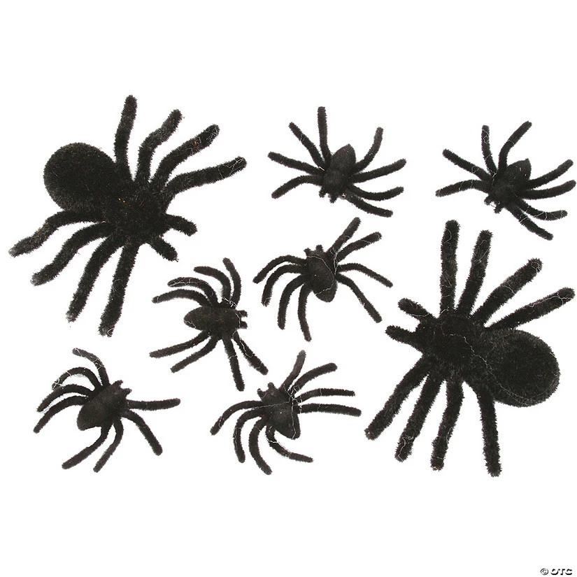 These realistic fuzzy black spiders are the perfect touch to make your Halloween decor extra icky! Just add a few webs and you have a great display! Eight-piece card contains 2 larger spiders and 6 smaller spiders. Arachnophobes beware!