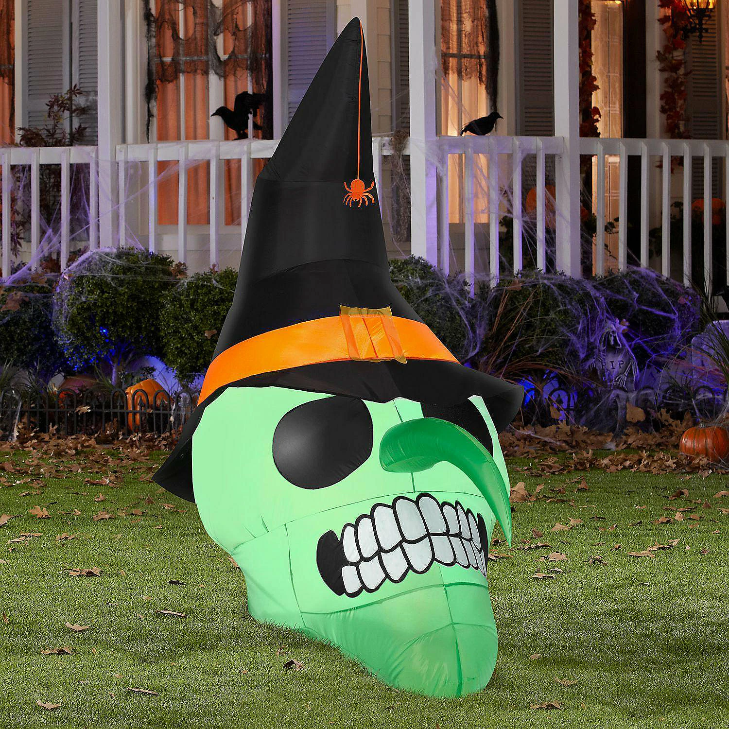 Greet your guests with this adorable Airblown® inflatable character. The green witch skull is perfect for any Halloween scene. Plug it in, stake it down and watch the magic of this Airblown Inflatable unfold!