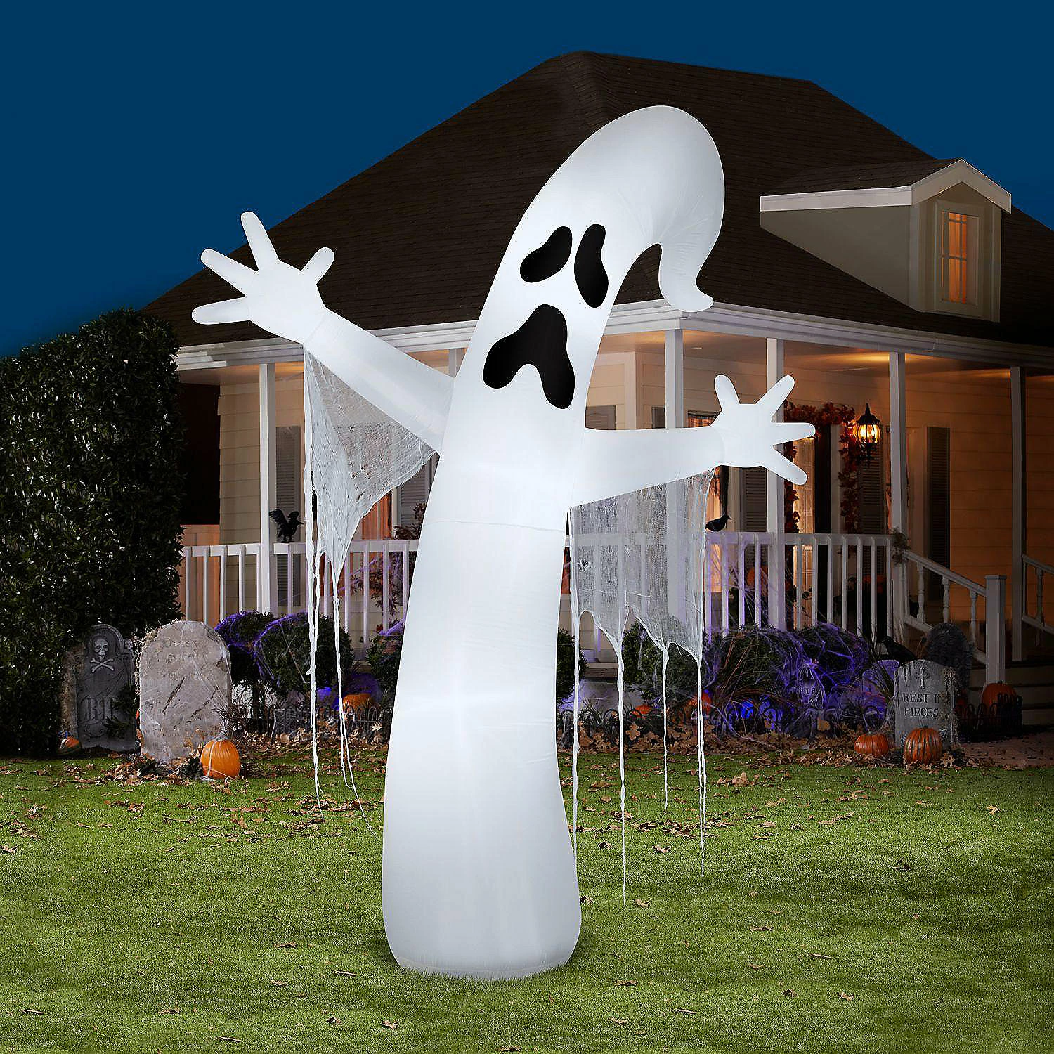 This giant ghost is a spooky greeting for your neighbors and guests. It features bright energy-efficient LEDS and self-inflates in seconds. Setup is super simple. Just plug it in, stake it down and watch the magic unfold. Display this decoration as a standalone or combine it with other Airblown® Inflatables to create a custom scene.