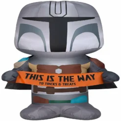 Gemmy Christmas Airblown Inflatable Inflatable Mandalorian with Halloween Banner 5 ft Tall grey