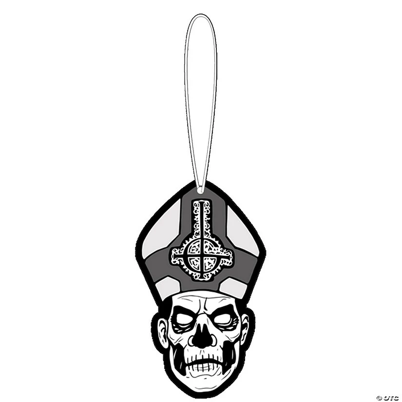 The Officially Papa Ghost Fear-Freshener from the from the heavy metal band Ghost. This wonderfully colored full fragrant deodorizer easily hangs anywhere with its attached elastic band. Let Papa Ghosts 3.5 inch banana scented face bring pleasure to your nose freshening even the dankest areas.Ghost! © 2018 Global Merchandising Services. All right reserved.