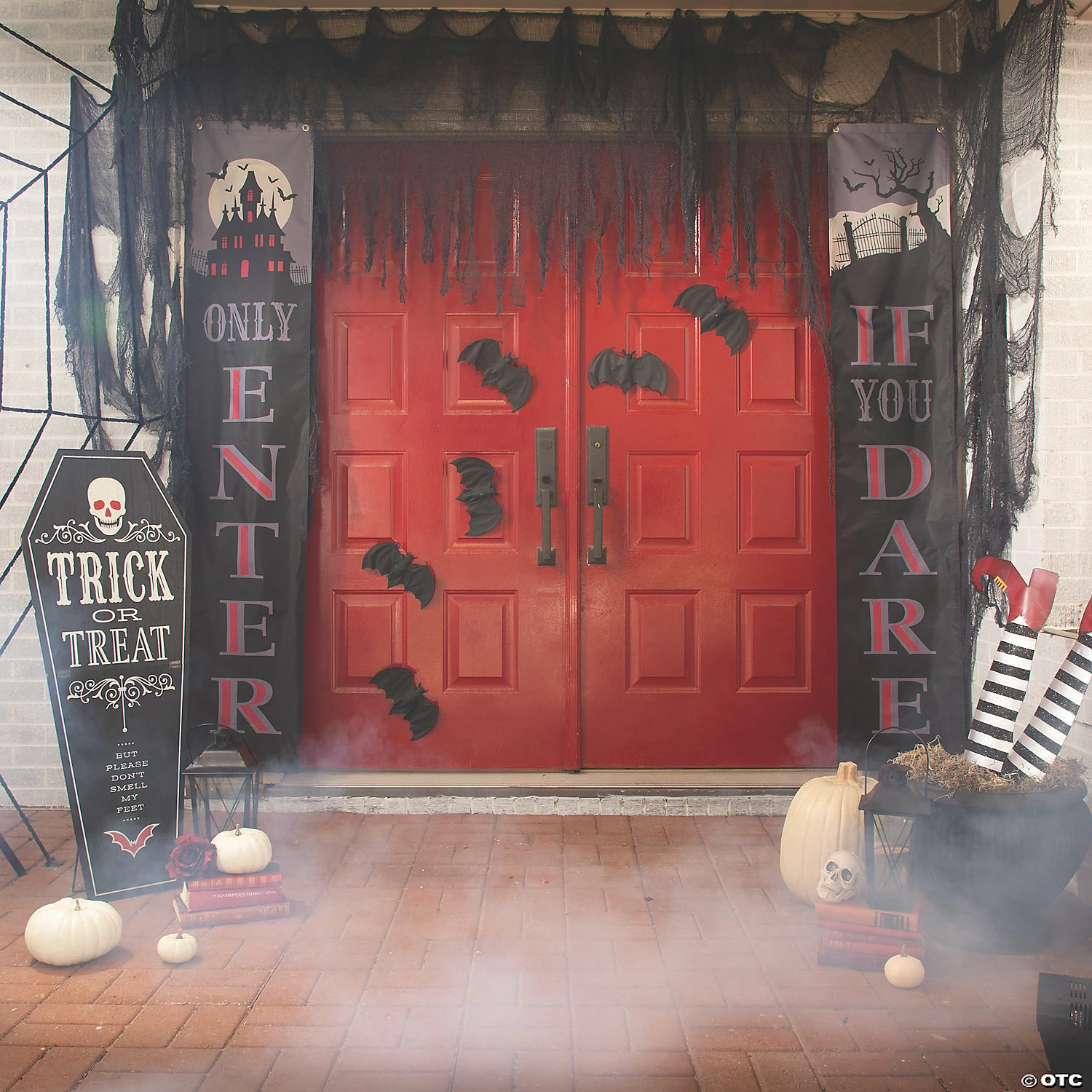 With this flagging your front door, who knows what horrors await inside?! Featuring a red and black design with text that reads “Only Enter If You Dare”, this bunting is a must-have for Halloween décor. Little ghouls and goblins are sure to think they’ve stumbled upon the home of a wicked witch or countless specters. Visitors, beware! Polyester. (2 pcs. per set) 15″ x 6 ft. 6″ Includes grommets for hanging. © OTC