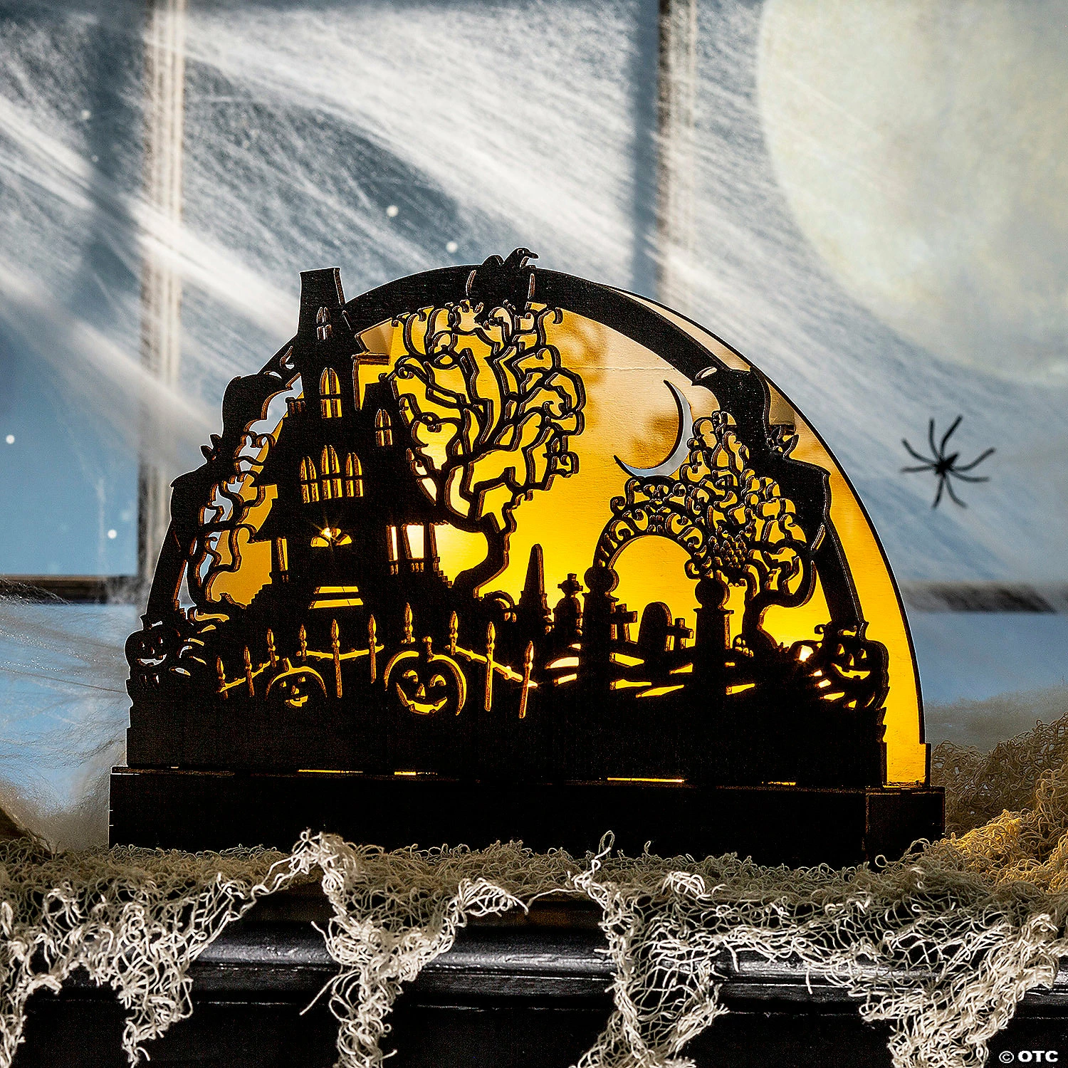 Show all the boils and ghouls what spooky fun this way comes with our Halloween LED Haunted House Table Decoration! A haunting addition to your Halloween supplies, this painted black wood sign features a spooky scene backlit with an LED light. Perfect for everything from greeting trick-or-treaters to spooking out a Halloween carnival and beyond! Wood. 12″ x 7 3/4″