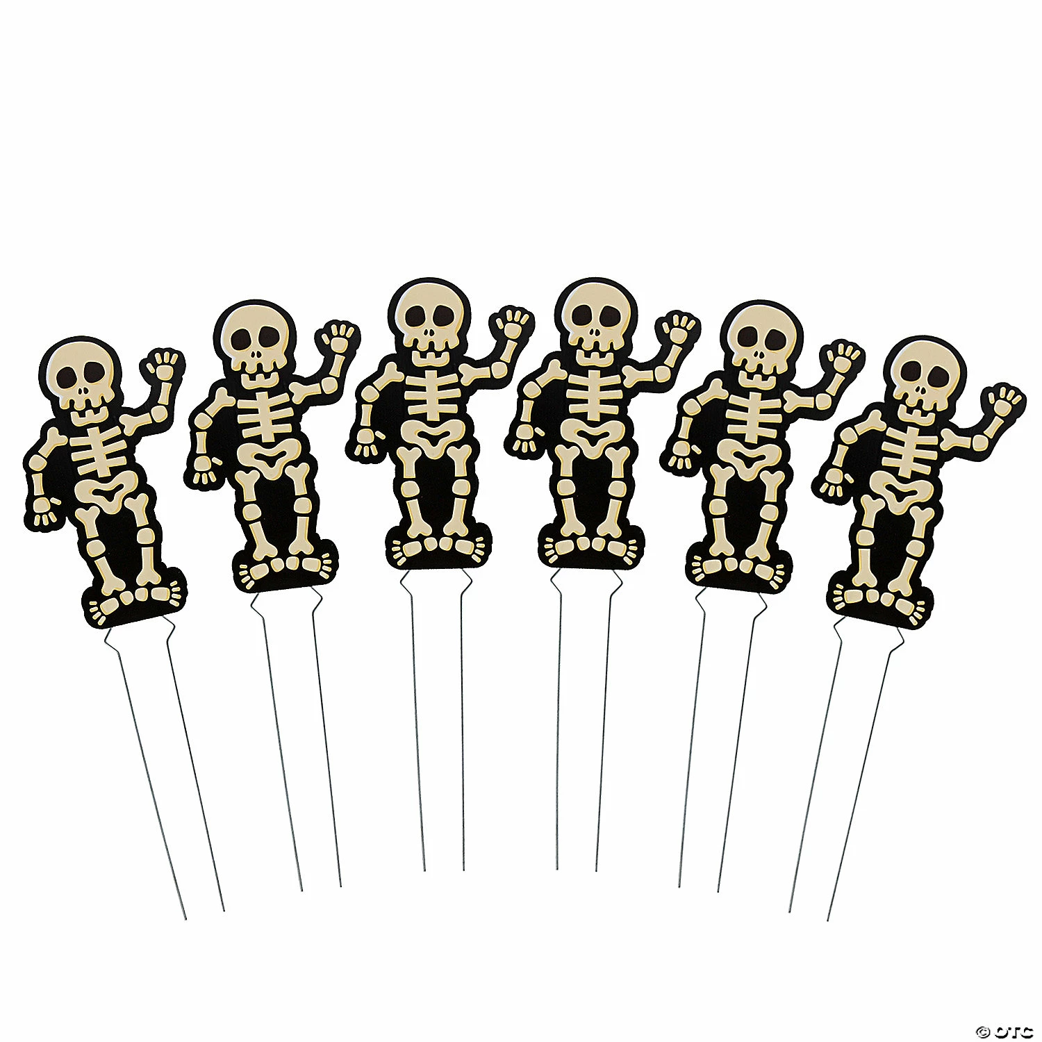 Greet visitors during the Halloween season with these cute skeleton sidewalk signs. Featuring metal stakes that make it easy to place the skeletons in a yard, these signs have smiling skeletons that appear to be mid-wave. Place the skeletons in a line or cluster them together for a bony welcoming committee. Corrugated plastic. (6 pcs. per unit) 8 1/2″ x 12 3/4″ Includes metal stakes. Single-sided. Simple assembly required. © OTC