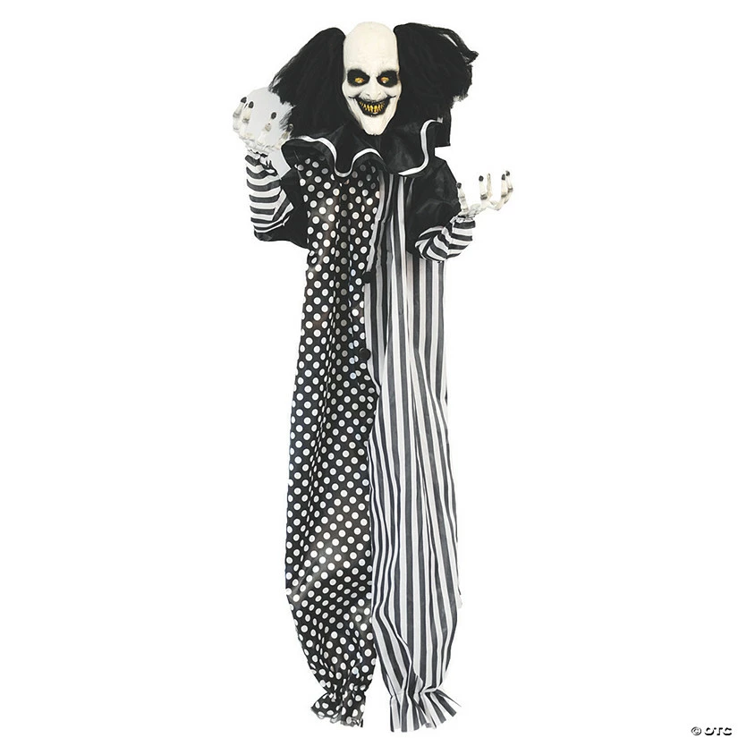 Terrify your neighborhood with this sinister 4′ hanging clown decoration. This creepy clown prop will bring nightmares to life. Add extra spook to your haunted carnival scene with this light up clown decoration. This Hanging Light Up Clown features an evil clown with black hair dressed in a polka dot and striped clown suit with ruffled clown collar. Requires 2AAA batteries (not included). Measures approximately 47” L x 37” W x 6” T. Special Shipping Information: This item ships separately from other items in your order. This item cannot ship to a P.O. Box. This item may be subject to additional processing days.ITEM IS NOT ELIGIBLE FOR EXPEDITED SHIPPING