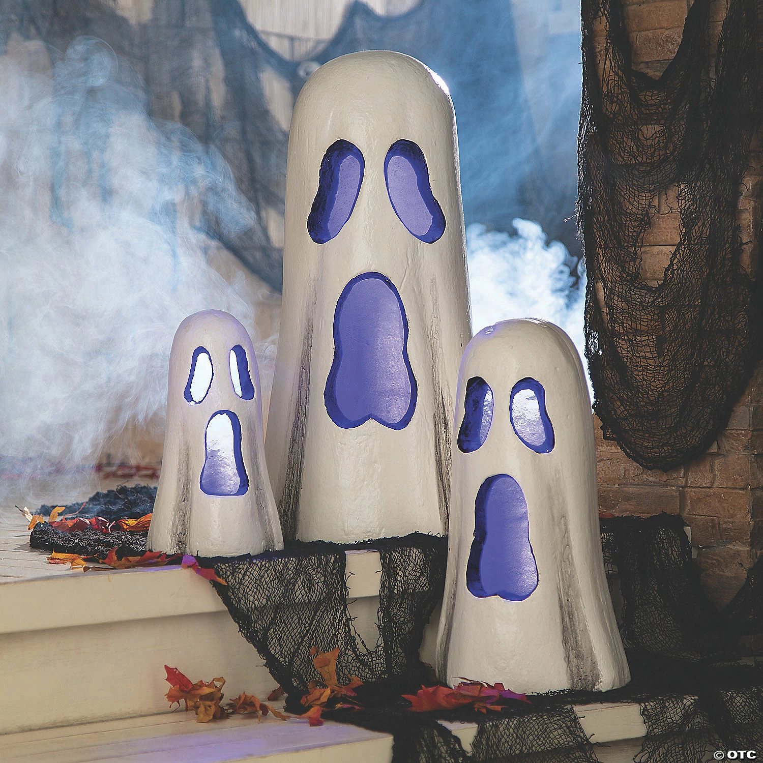 These hollow ghosts light up with a flip of a switch! The perfect addition to your indoor Halloween decorations, they’ll look awesome on an entryway table or even on your mantel! Includes on/off switch. Includes 3 LR 44 batteries (replaceable). Foam. (3 pcs. per set) Large, 23″ x 12″ diam; medium, 16 1/2″ x 9″ diam.; small, 11″ x 6″ diam.