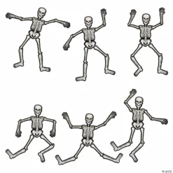 The elbow joint is connected to the shoulder joint. The shoulder joint is connected to the neck joint. Once assembled, these dancing skeletons won’t disappoint! This set of cutouts feature spooky mini skeletons and are a must-have addition to Halloween party supplies or home décor. Hang them on a wall, bulletin board or anywhere throughout the event space along with other Halloween decorations from this website! Cardstock with metal grommets. (6 pcs. per unit) 8 3/4″ x 15″ Simple assembly required. © OTC