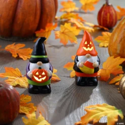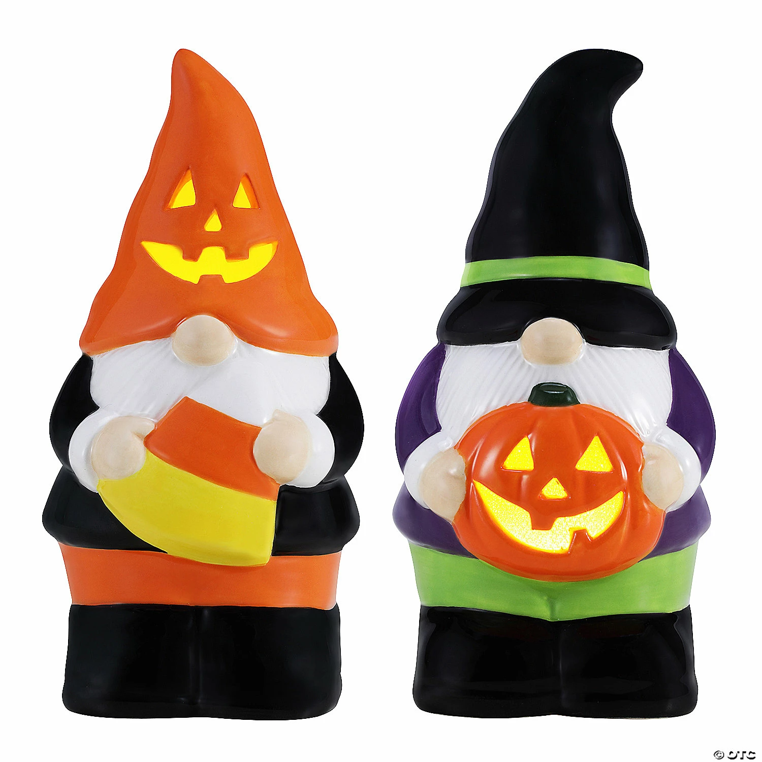 Add some cuteness to your Halloween decorations with these adorable Halloween gnomes. Each battery-operated gnome lights up to create a Halloween look that’s not-so-scary but is certainly adorable! A boo-tiful addition to Halloween home decor, these gnomes feature Jack-O’-Lantern images and classic gnome shapes. Ceramic. (2 pcs. per set) 3″ x 2 3/4″ x 5 1/2″ Requires 2 “AA” batteries, not included.