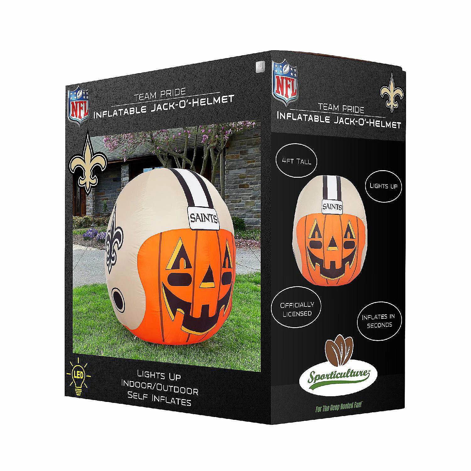 Get ready for fall, football and inflatable fun with the Team Pride Inflatable Jack-O’-Helmet! This four foot officially licensed pumpkin with jack-o’-lantern face and logo graphic helmet inflates in seconds, illuminates with internal LED lights, and deflates for easy storage. Made of durable weatherproof material, it’s the perfect addition to a front yard Teamscape and Halloween décor. Complete with tie down ropes and stakes, you are sure to be the envy of the neighborhood all season long! Makes the perfect gift For The Deep Rooted Fan!