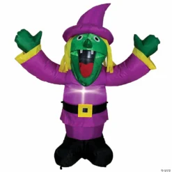 Give chills and thrill to your Halloween decor with this inflatable witch. It self inflates in seconds so you don’t waste your time inflating this decoration. This is the best choice for your haunted house yard or entryway. Product Features: Inflatable witch Halloween decoration. Witch is wearing a purple robe with gold accents. Long blonde hair with a large green nose. Durable weatherproof nylon. Self inflates in minutes. Collapses quickly for easy storage. Blower included – simply plug this decoration in and it inflates and lights up in just a few minutes!. Additional Product Features: Pre-lit with warm white light. UL certified and approved for indoor/outdoor use. Transformer included. Class 2 power supply. Input: 120 volts 60 hertz 0.28 amps. Output: 12 volts 1.25 amps. 5 foot lead cord. Ground stakes tether and spare replacement bulb included. Dimensions: 3.5″ high. Material(s): nylon/plastic Special Shipping Information: This item ships separately from other items in your order. This item cannot ship to a P.O. Box. This item may be subject to additional processing days. ITEM IS NOT ELIGIBLE FOR EXPEDITED SHIPPING
