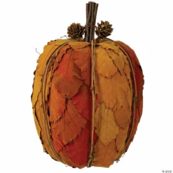 This adorable pumpkin would be the perfect addition to your fall and Thanksgiving decor this year. Authentic pine cones and twigs adorn the top of the pumpkin depicting the stem and leaves. Perfect to use as a centerpiece or as an accent piece! Product Features: Artificial tabletop pumpkin Two pine cones create the leaves Brown stem constructed from twigs Perfect to place on any tabletop in your home Recommended for indoor use only Dimensions: 10″H x 7″W x 7″D Material(s): synthetic