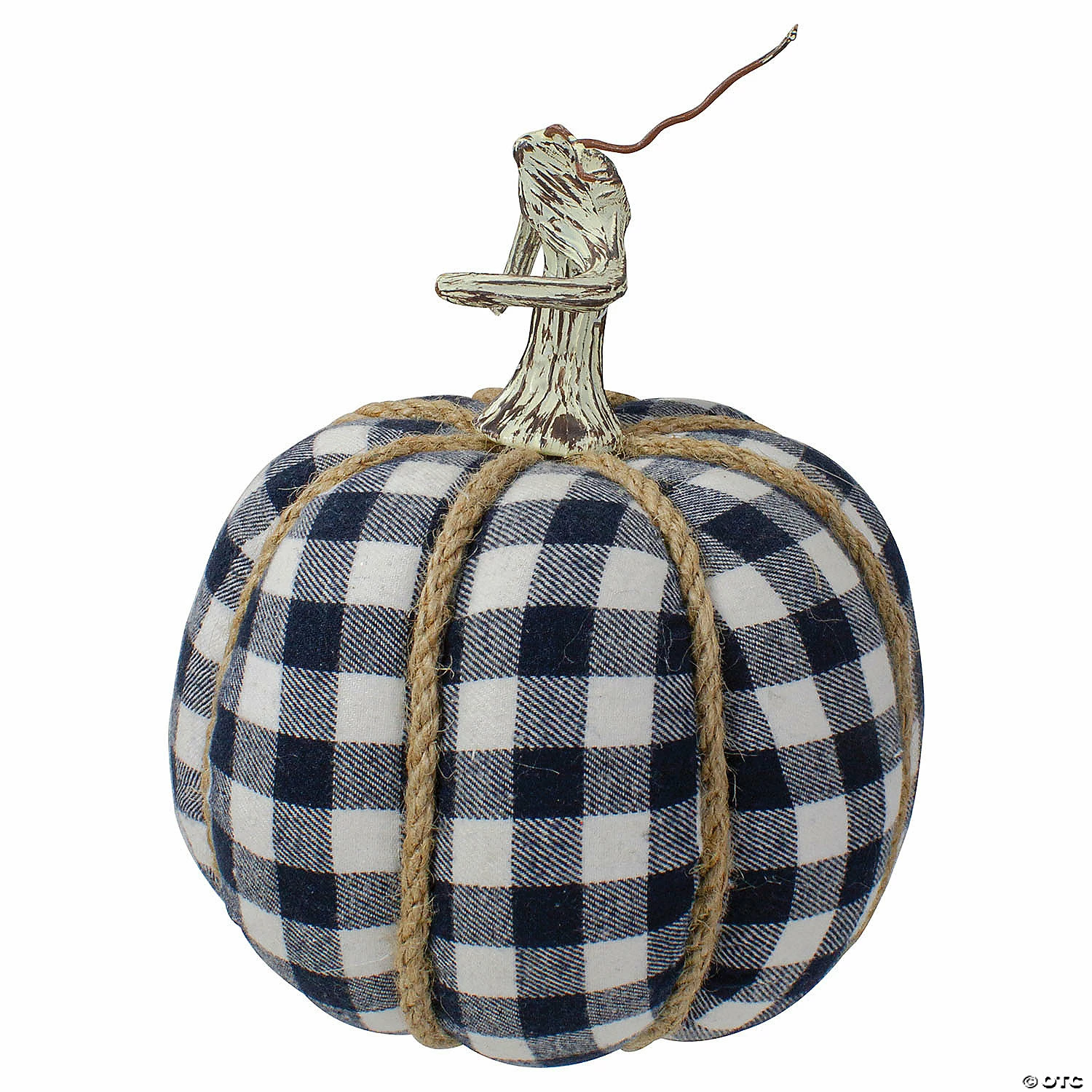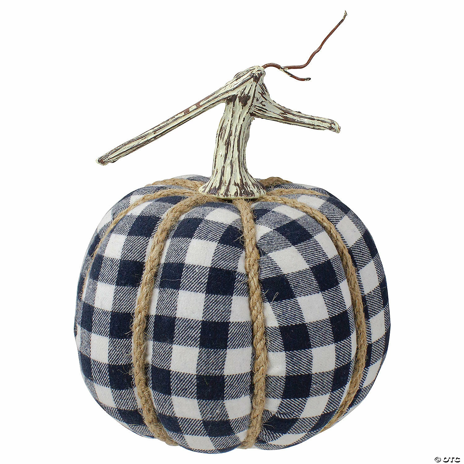 This adorable pumpkin would be the perfect addition to your fall and Thanksgiving decor this year! The plaid design is great to add to your holiday displays. It is also perfect to use as a centerpiece or as an accent piece.Product Features: Artificial fabric tabletop pumpkin. Has a blue and white plaid pattern. Twine rope accents. Ivory and brown stem. Perfect to place on any tabletop in your home. Recommended for indoor use only. Dimensions: 7.75″H x 6.5″W x 6.5 “D. Material(s): synthetic fabricSpecial Shipping Information: This item ships separately from other items in your order. This item cannot ship to a P.O. Box. This item may be subject to additional processing days.ITEM IS NOT ELIGIBLE FOR EXPEDITED SHIPPING