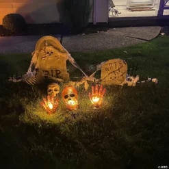 8.5″ Lighted Orange Skull and Hands Outdoor Halloween Decoration – 4ft Black Wire