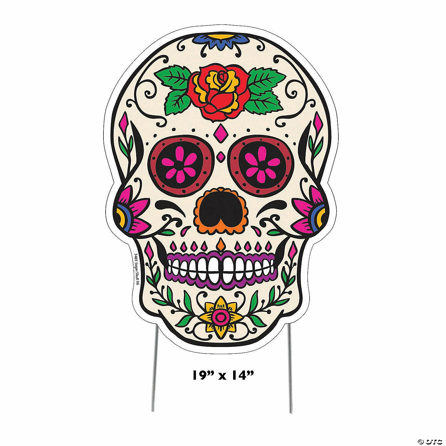 Celebrate the Day of the Dead with this brightly-colored sugar skull. Featuring traditional markings and colors, this yard sign will remind everyone to honor their ancestors on Día de Muertos or can serve as colorful Halloween yard decoration. Not all skulls are scary…some are downright beautiful, like this yard sign. Plastic. 14″ x 19″ Includes metal stake. One-sided. Simple assembly required. Special Shipping Information: This item ships separately from other items in your order. This item cannot ship to a P.O. Box. This item may be subject to additional processing days.ITEM IS NOT ELIGIBLE FOR EXPEDITED SHIPPING