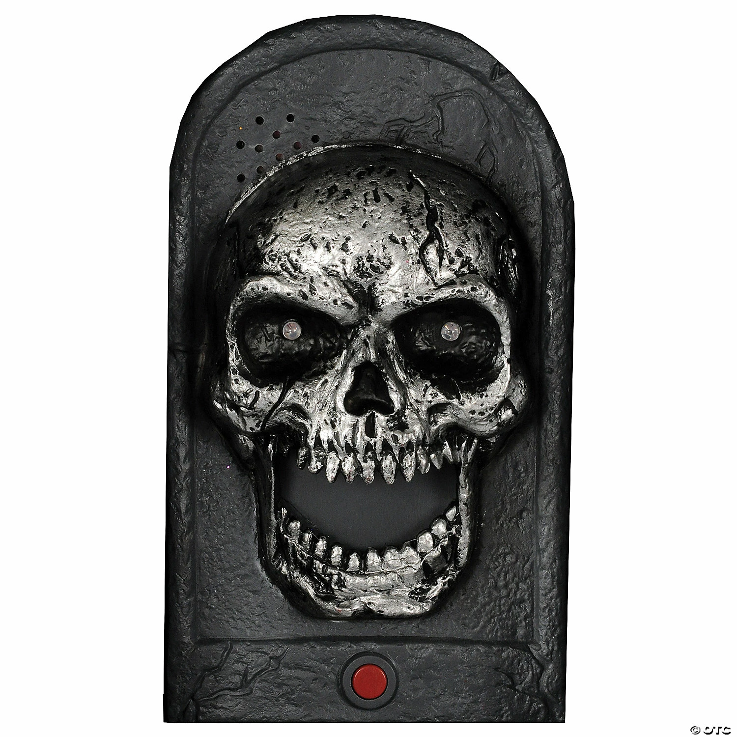 Light Up Stick this Skull. Door Bell on your door and watch your guests react to his scary warning to enter at your own risk! Includes: Door Knocker the Skull’s eyes light up and he laughs menacingly, then the doorbell rings and a snake pops out to snap at your finger! Sure to make your friends jump! Approximately 9″ tall x 5″ wide.Special Shipping Information: This item ships separately from other items in your order. This item cannot ship to a P.O. Box. This item may be subject to additional processing days.ITEM IS NOT ELIGIBLE FOR EXPEDITED SHIPPING