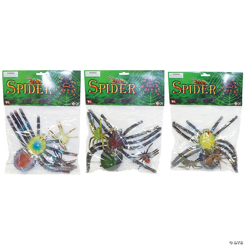 Assorted Rubber Spiders. Great for scattering around your home haunted display, a haunted house, or just to scare your friends. Bag contains 3 spiders – 2 small and one large. Assorted colors.Special Shipping Information: This item ships separately from other items in your order. This item cannot ship to a P.O. Box. This item may be subject to additional processing days.ITEM IS NOT ELIGIBLE FOR EXPEDITED SHIPPING